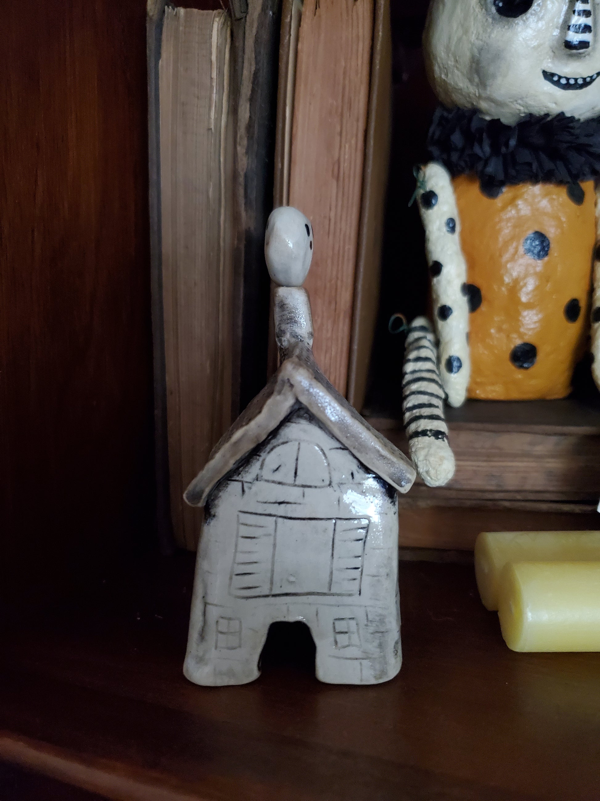 Height - 4.5 inches tall with ghost in chimney.