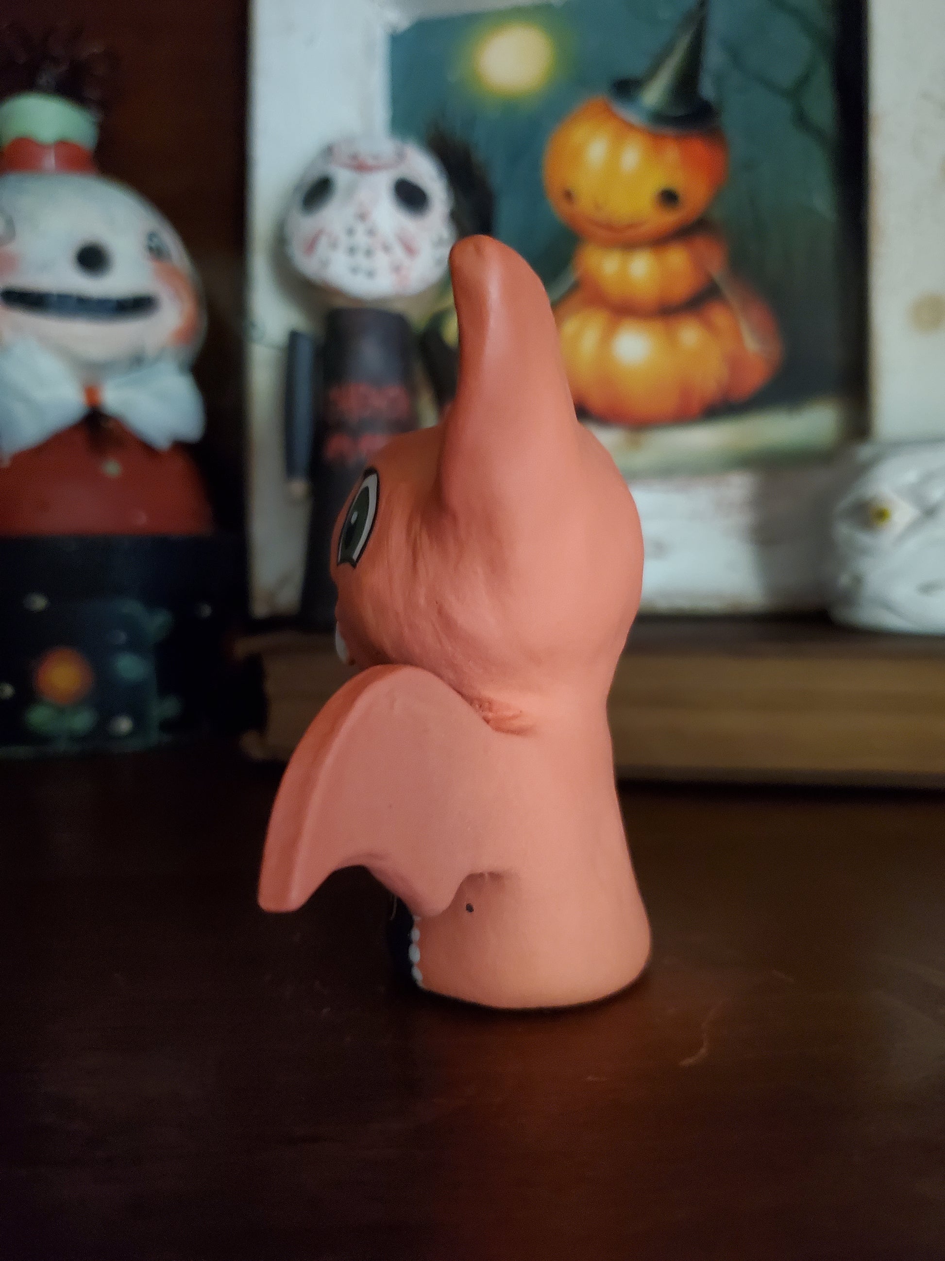 Add a little battitude to your life with Betty McBats! This pink bat features charming gingham pattern wings, an adorable smile, and fangs for days. With big bat ears to complete her look, Betty is the perfect companion to bring a playful and quirky vibe to any space.