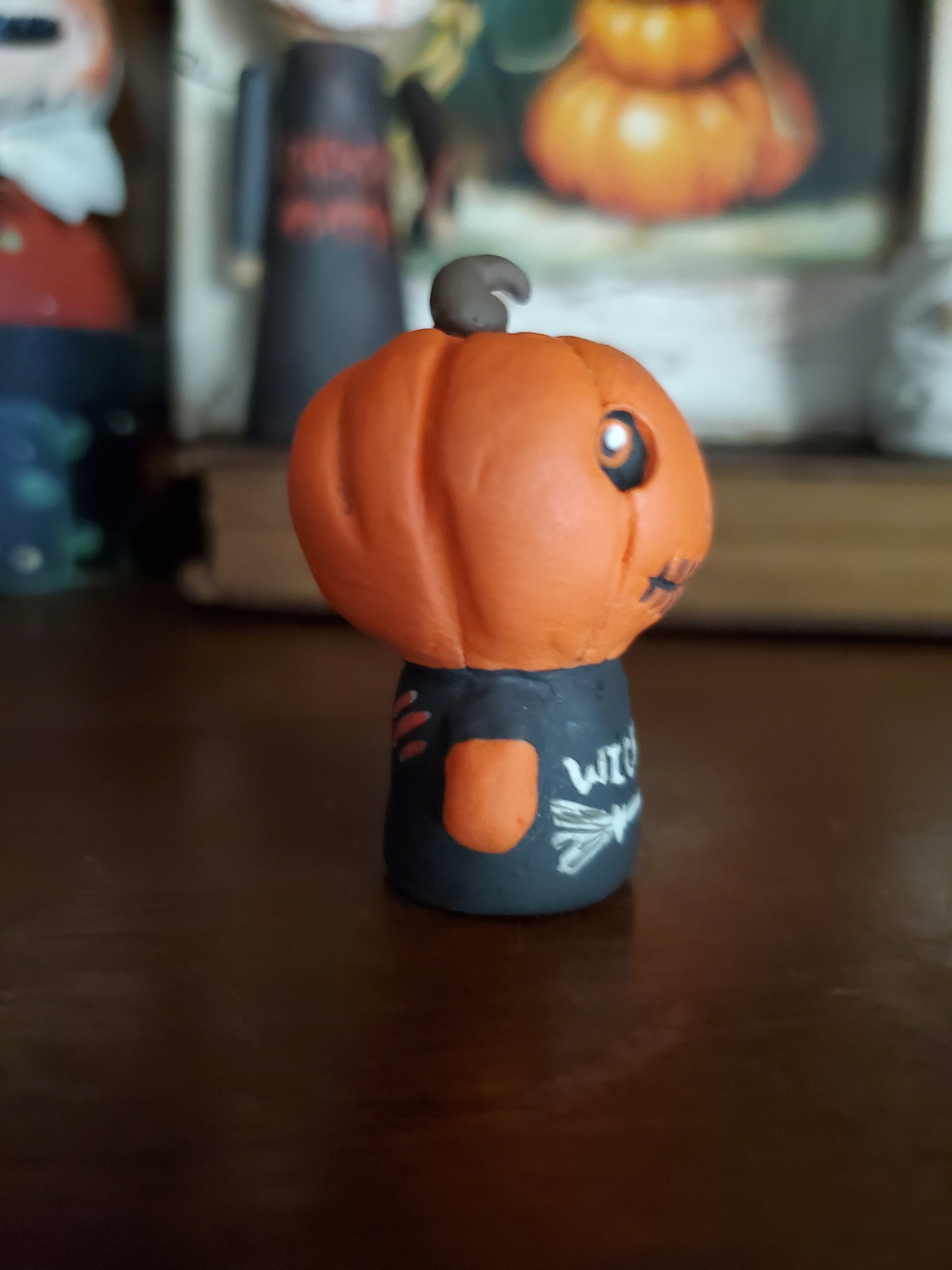 Get into the spooky spirit with Wicked Jack, the adorable miniature jackolantern with a mischievous side. Standing at 2 inches tall, this vintage Halloween-inspired figurine is a must-have for any holiday display.